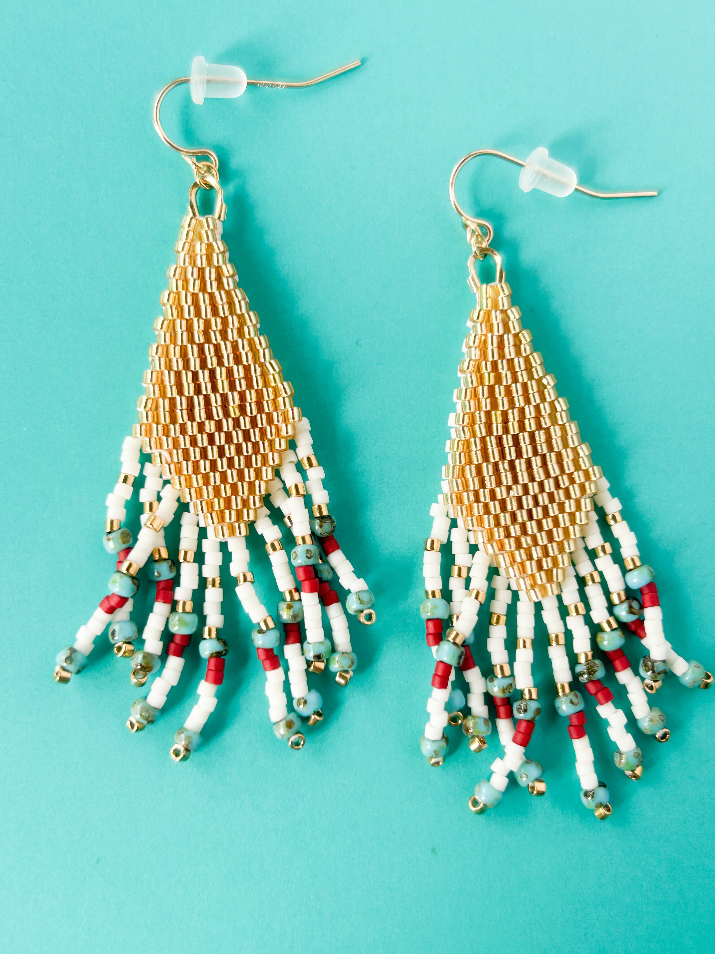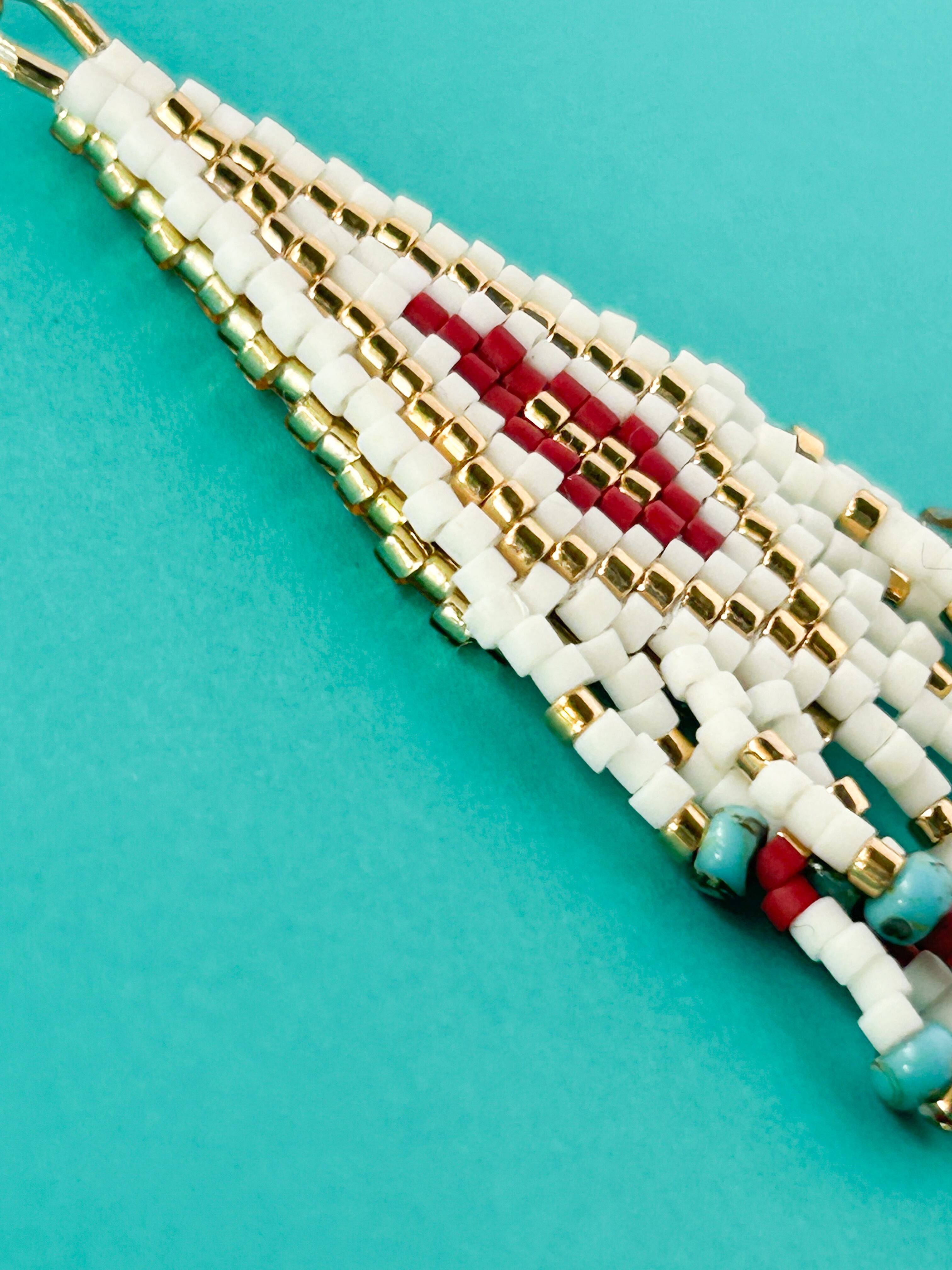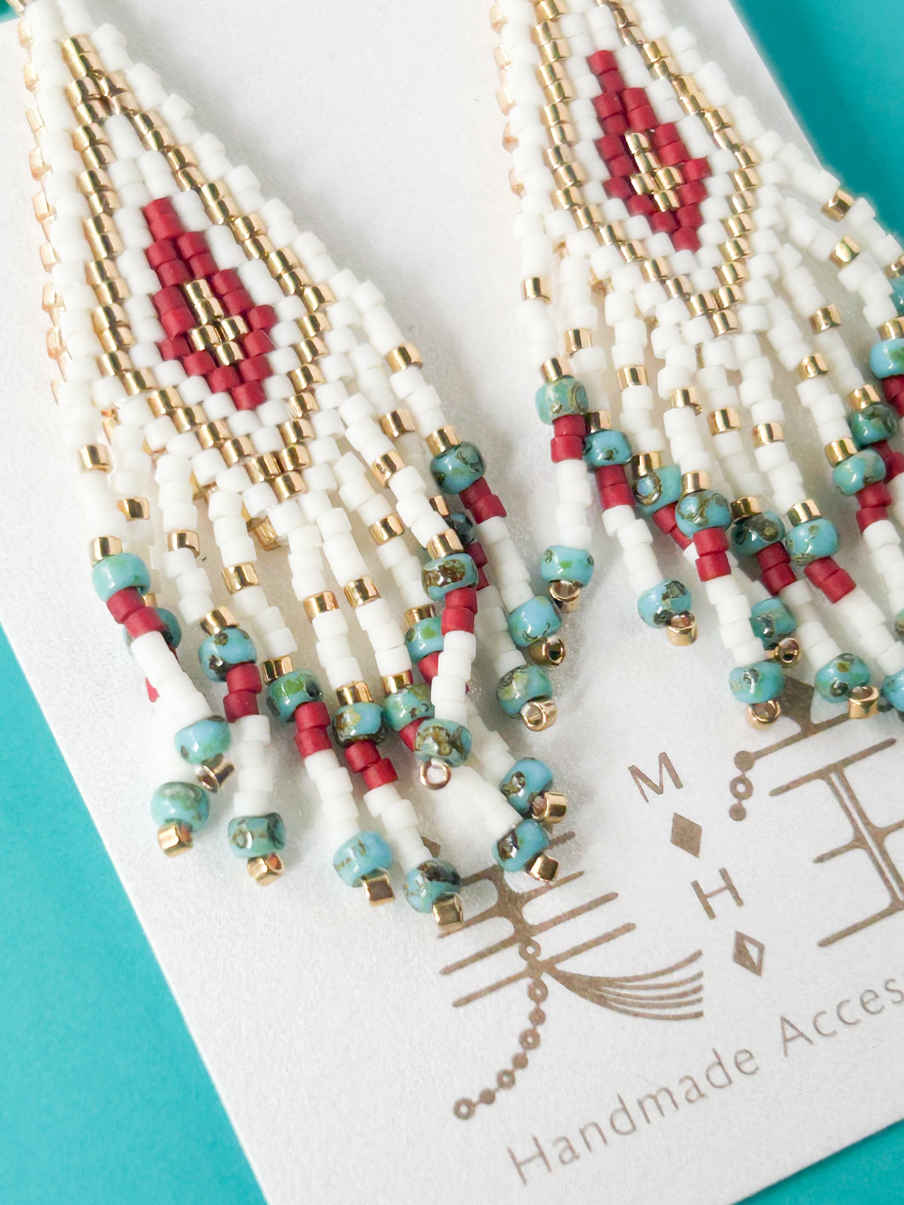※フリンジやその他のパーツは全てハンドメイドでお作りしているため、仕上がりの大きさに若干の個体差がございます。写真と完全に同じものが届くわけではありませんのでご了承くださいませ。