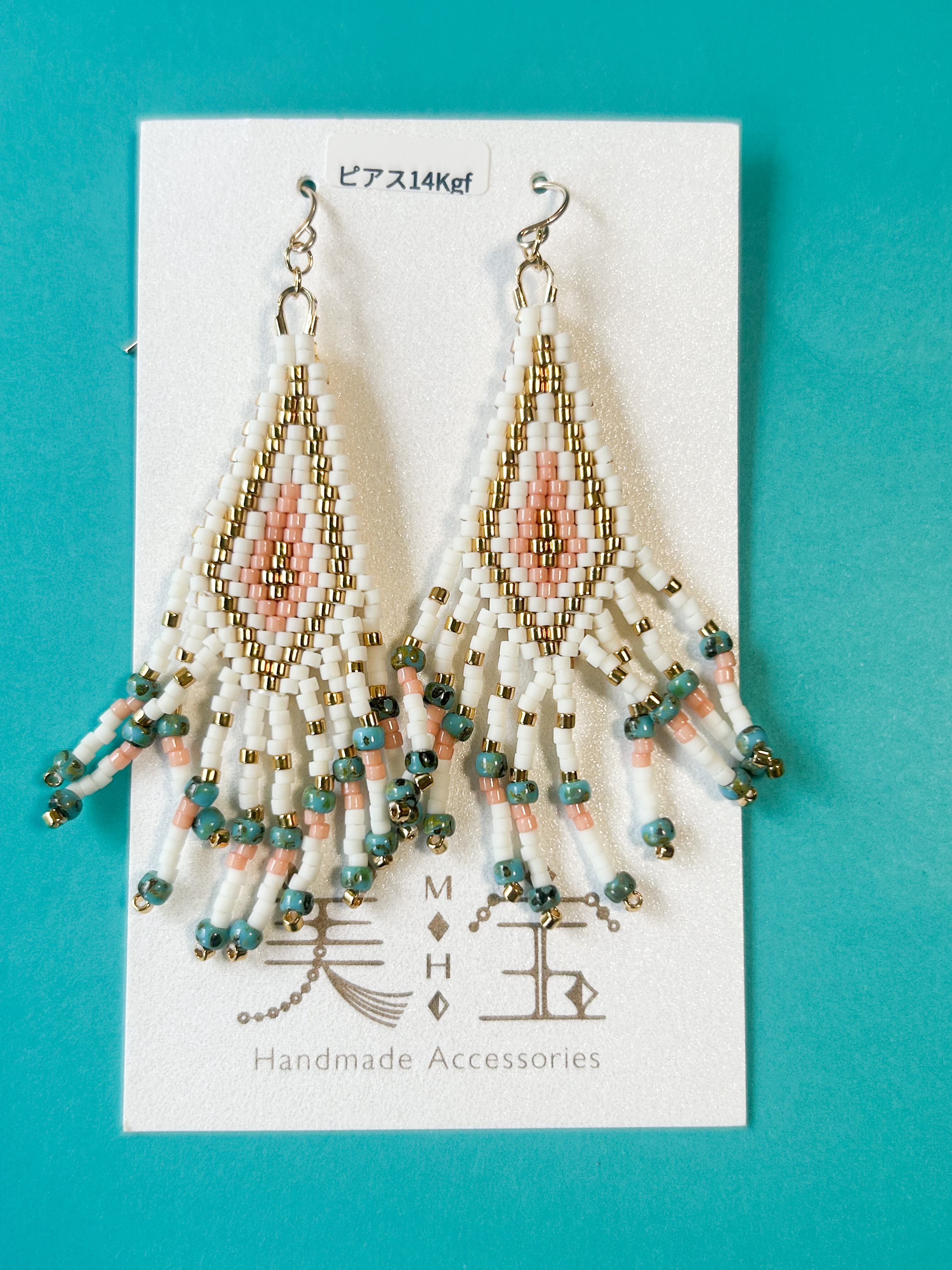 ※フリンジやその他のパーツは全てハンドメイドでお作りしているため、仕上がりの大きさに若干の個体差がございます。写真と完全に同じものが届くわけではありませんのでご了承くださいませ。