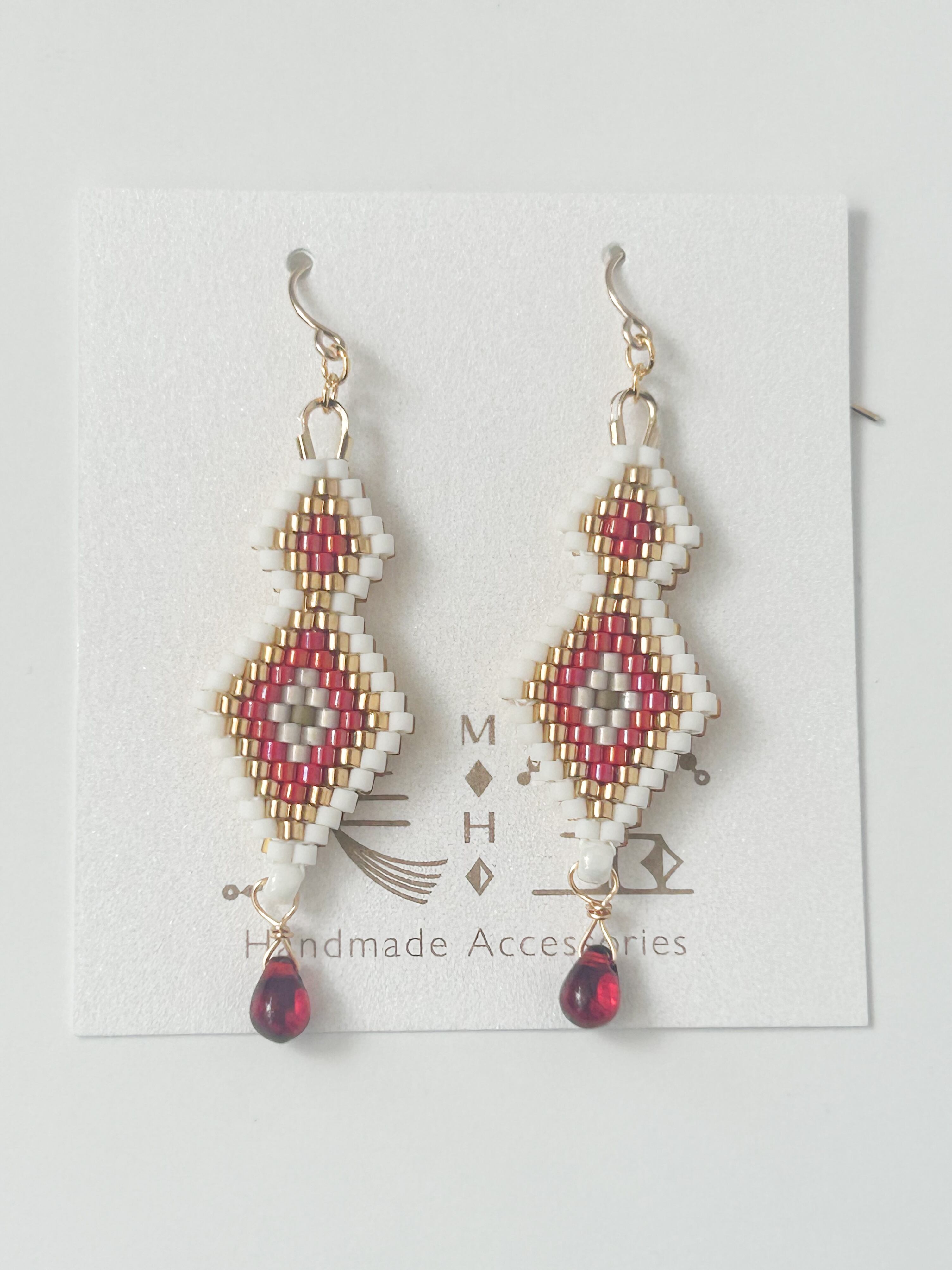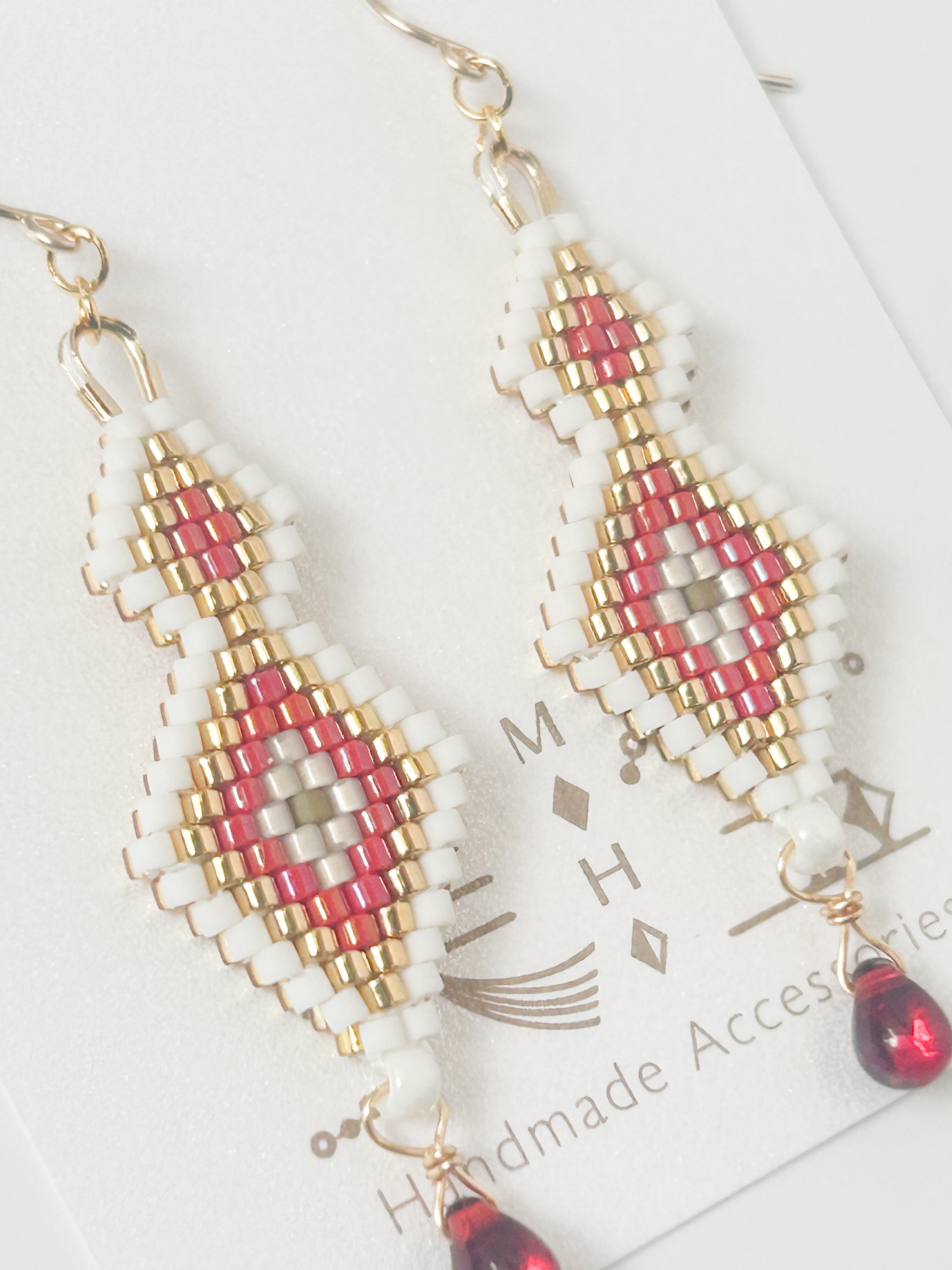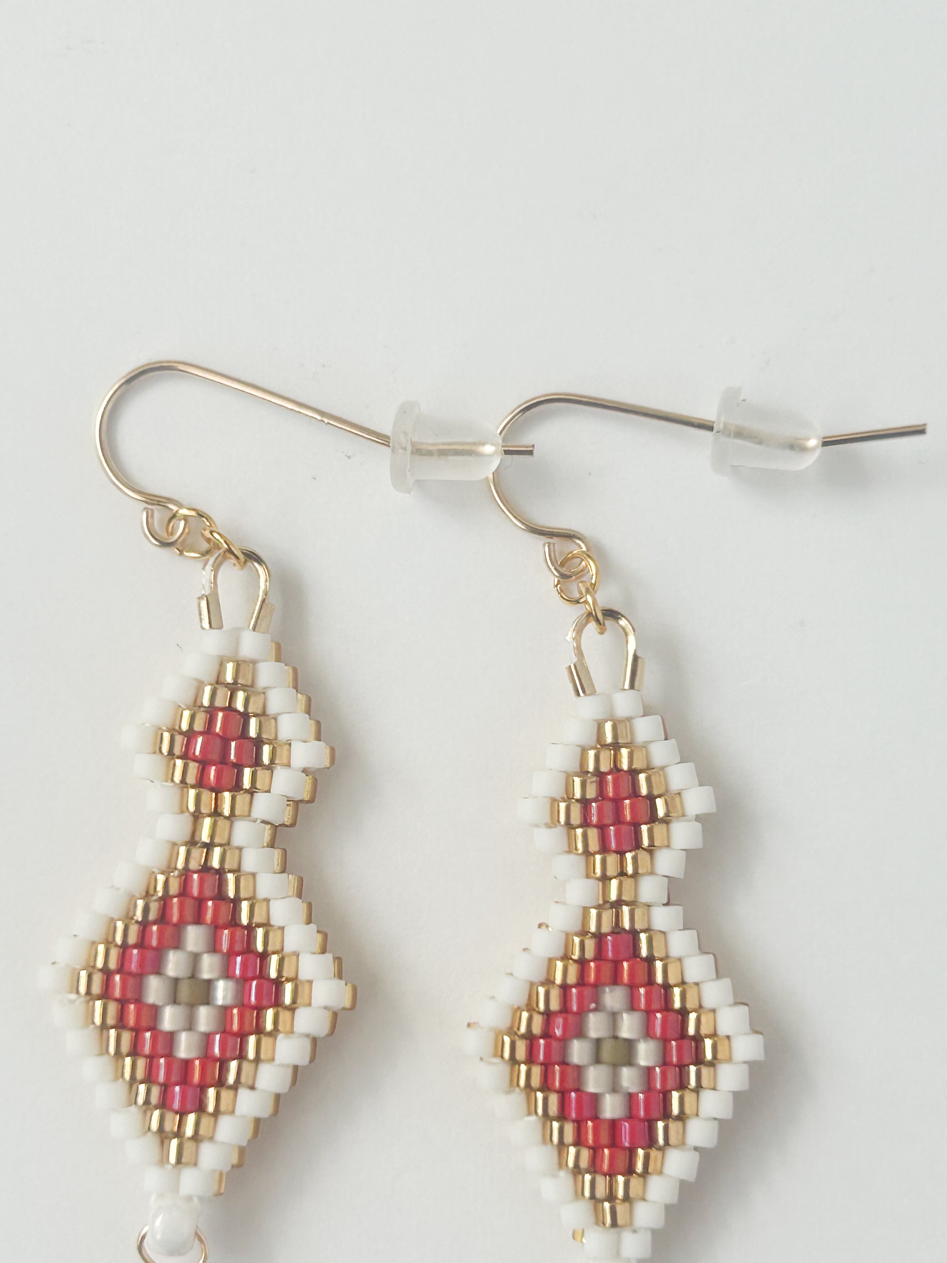 【赤】ステッチのネイティブ柄ピアス