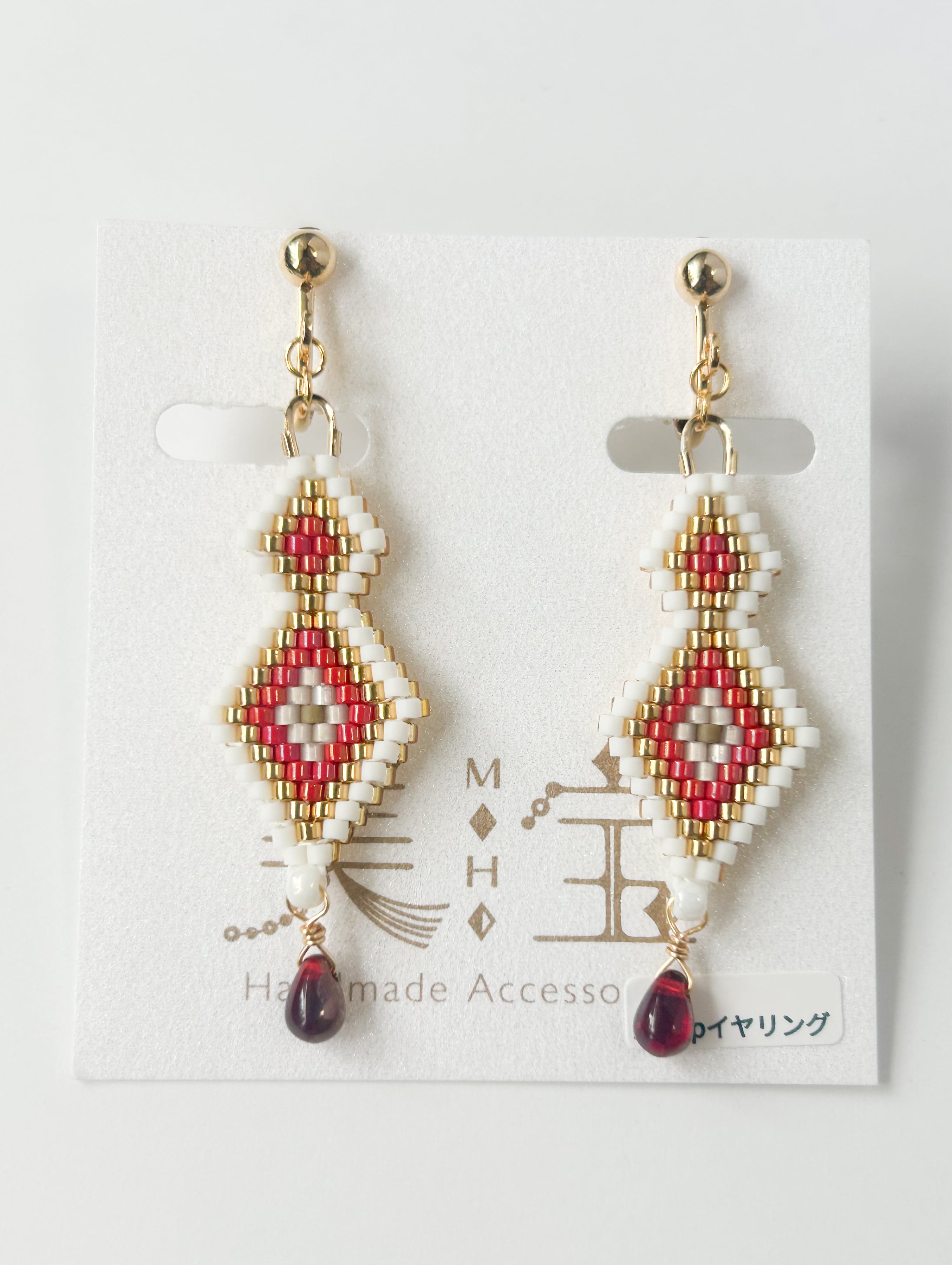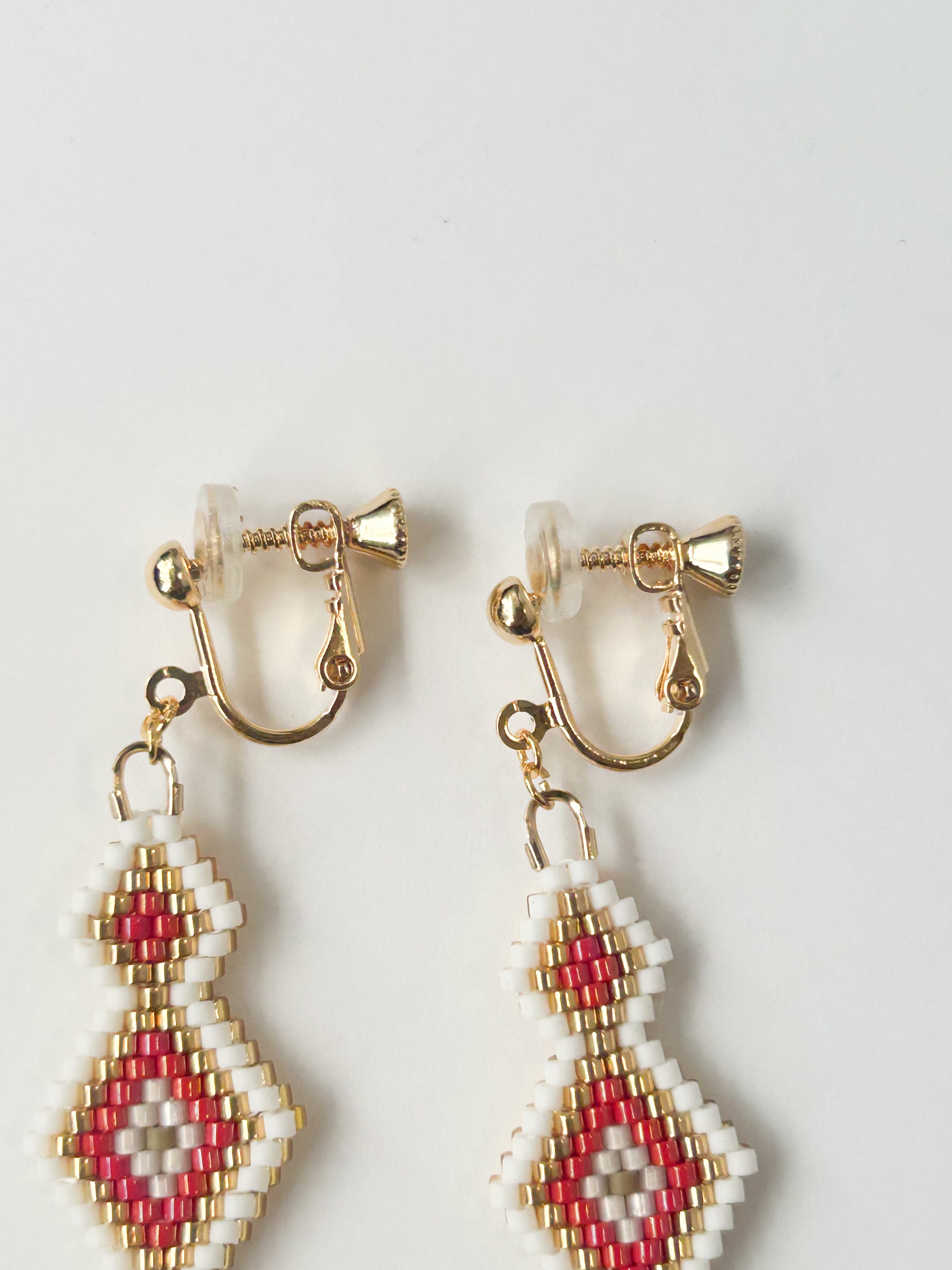 【赤】ステッチのネイティブ柄イヤリング