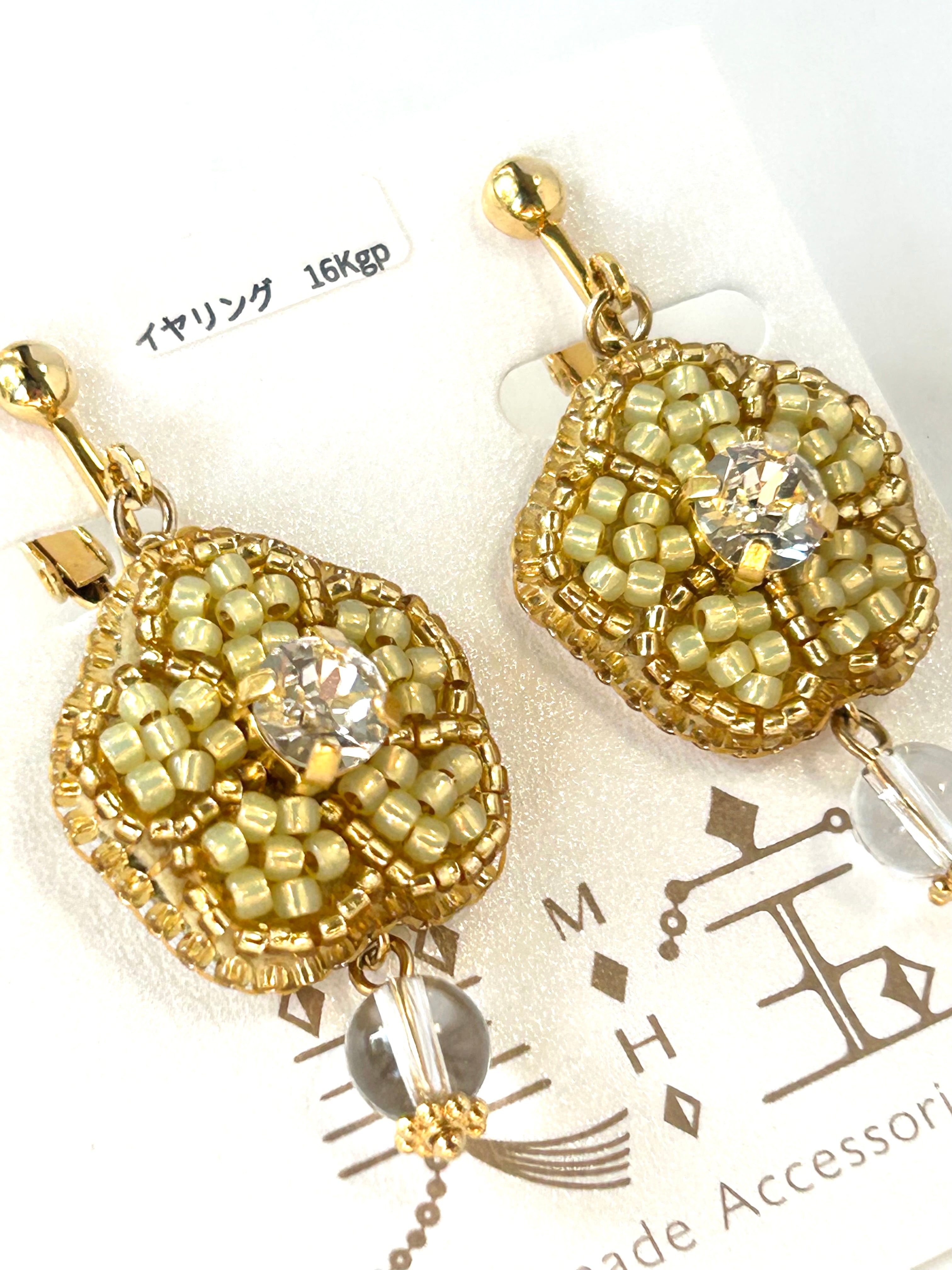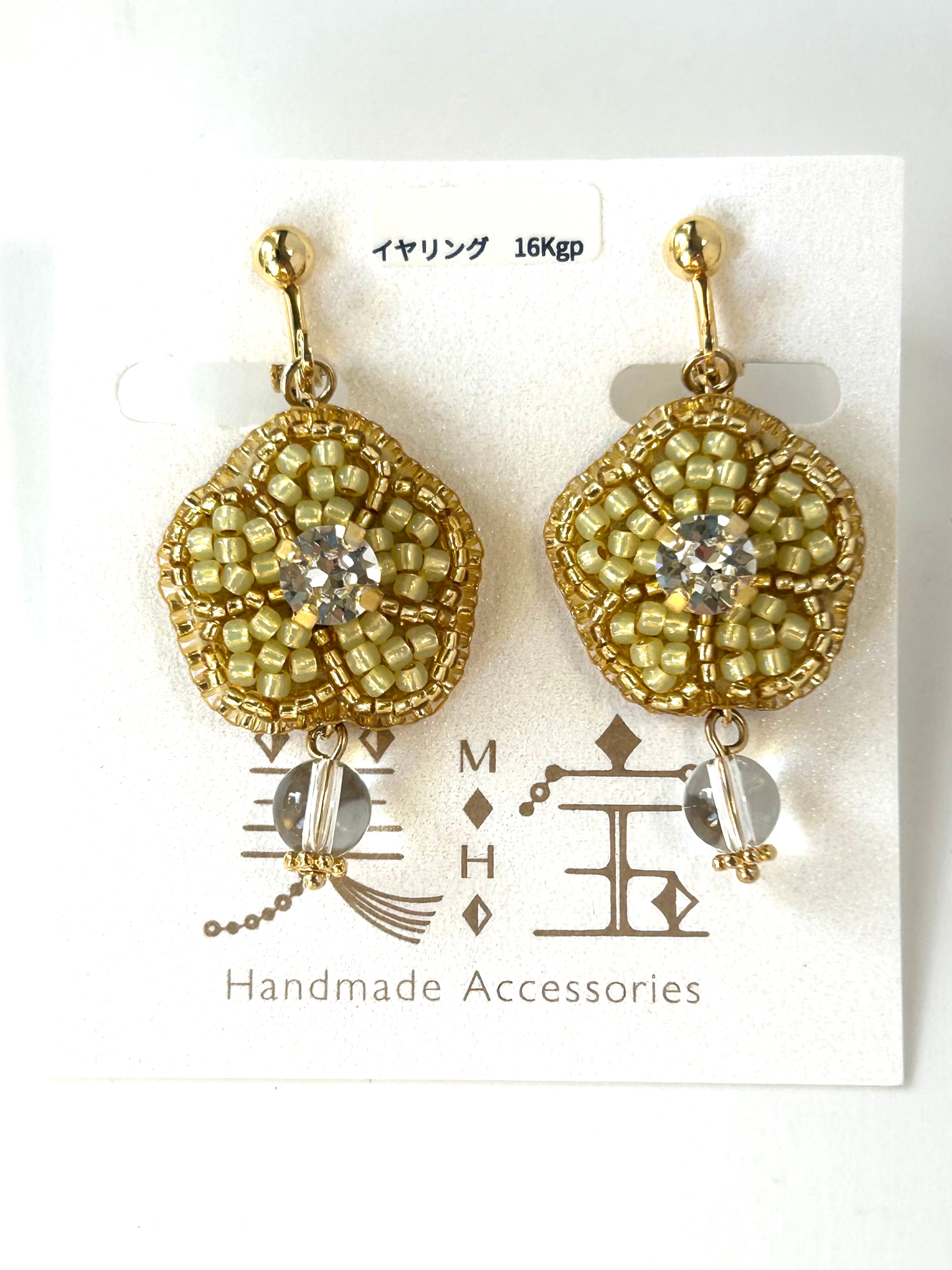 ビーズ刺繍の黄色のお花のイヤリング