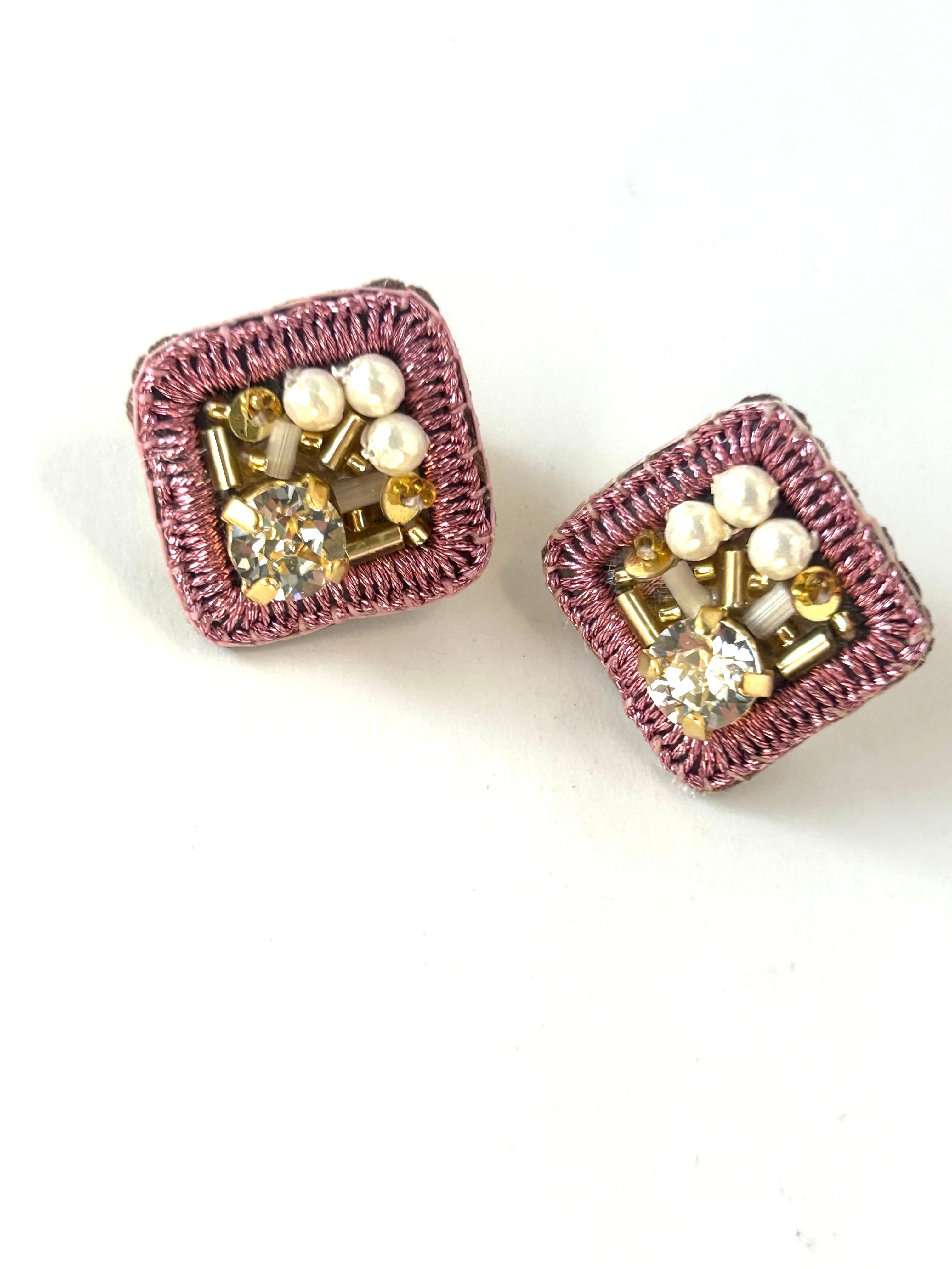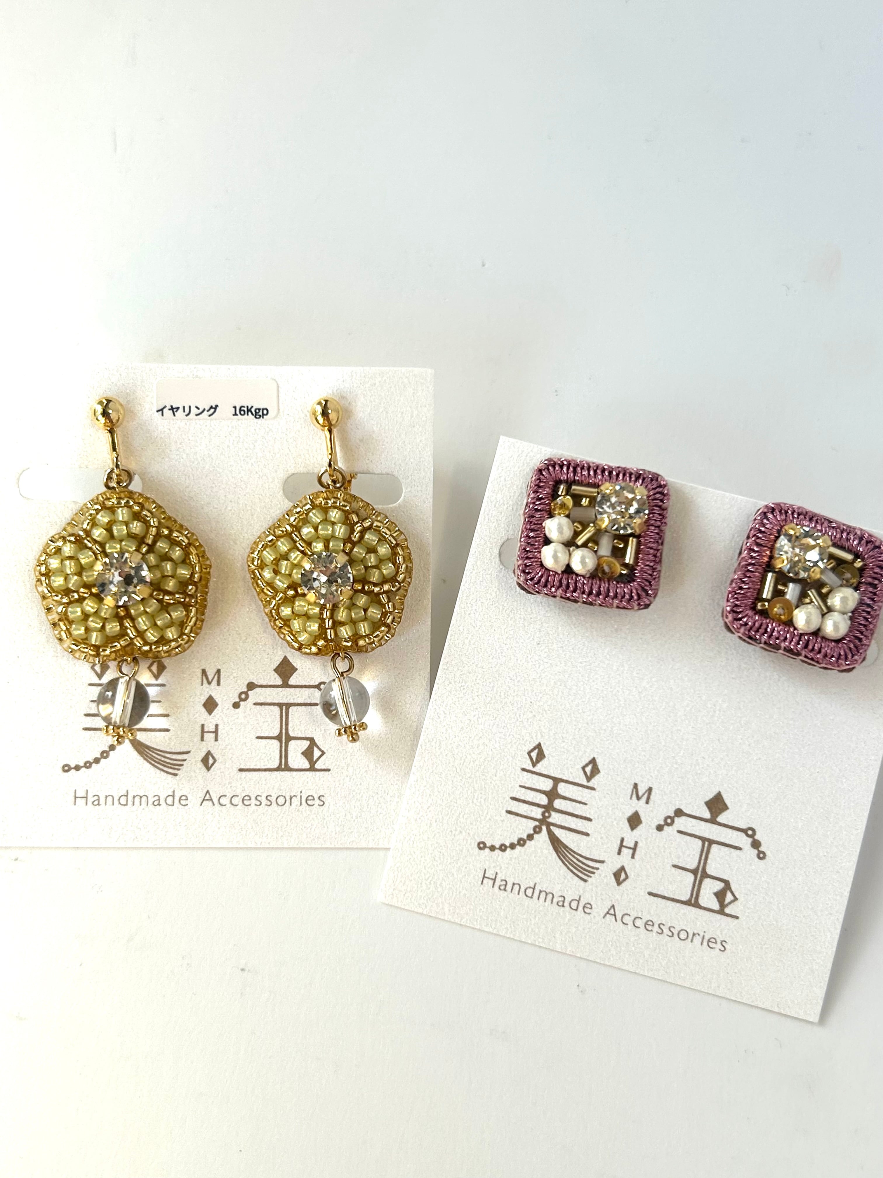 イヤリング 2026年福袋 2点セット 刺繍のお花イヤリングとスクエアイヤリング