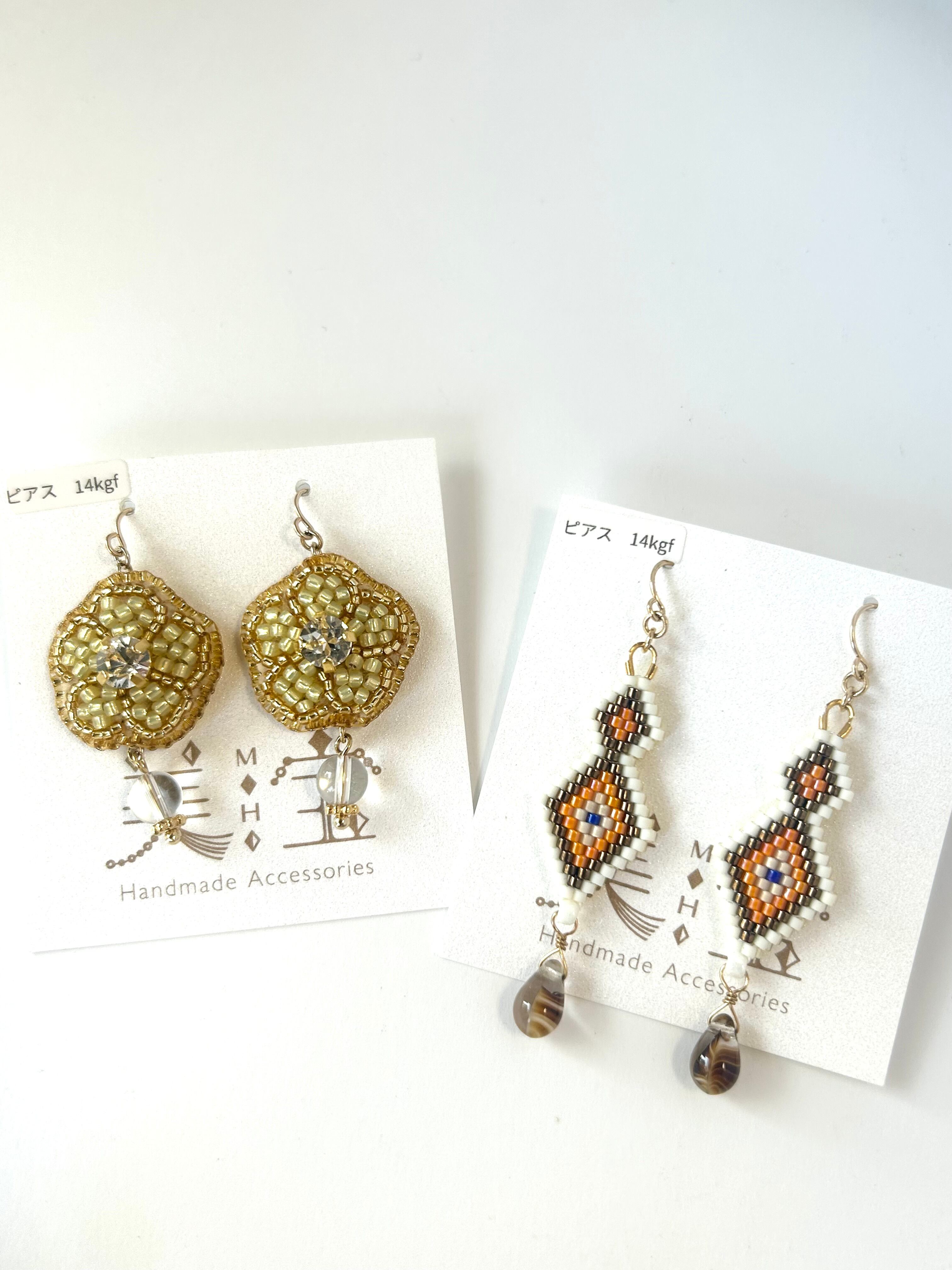 ピアス 2026年福袋 2点セットお花の刺繍ピアスとネィティブ柄のピアス