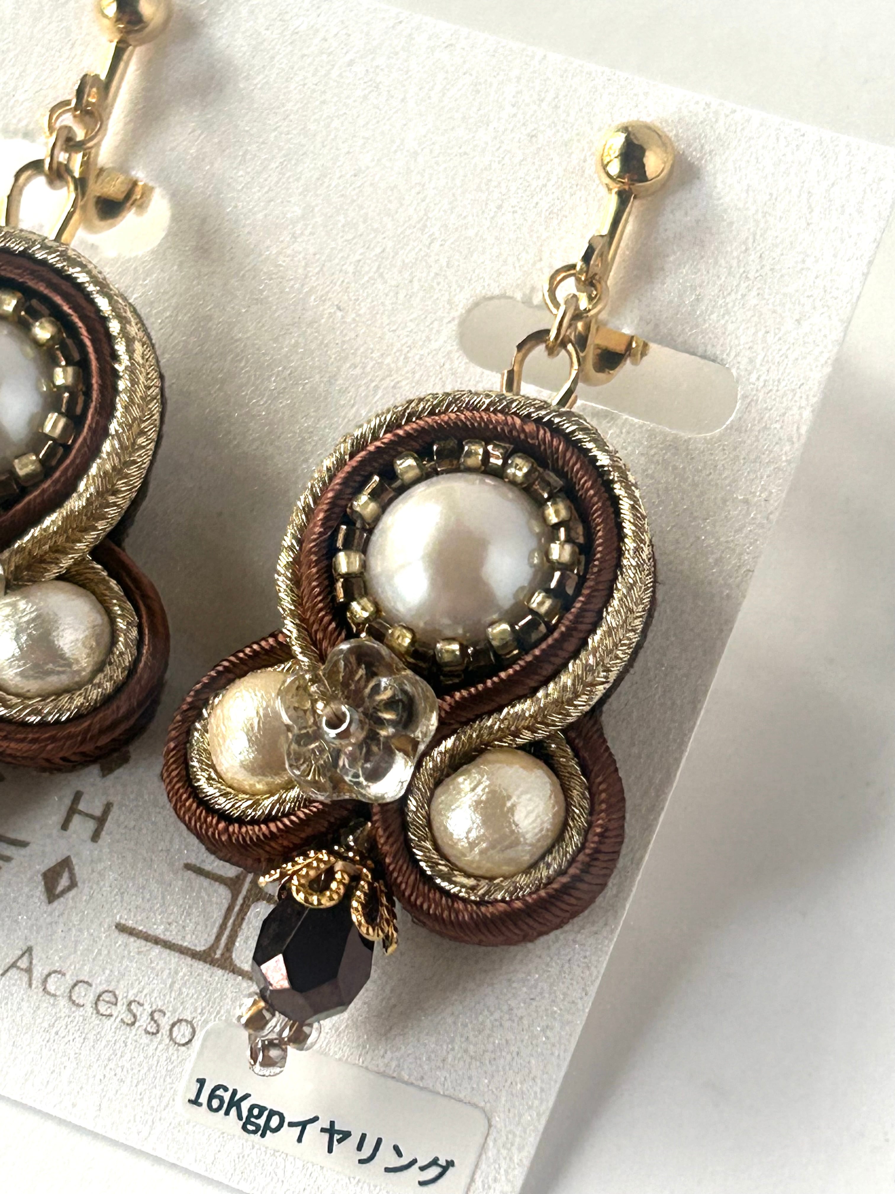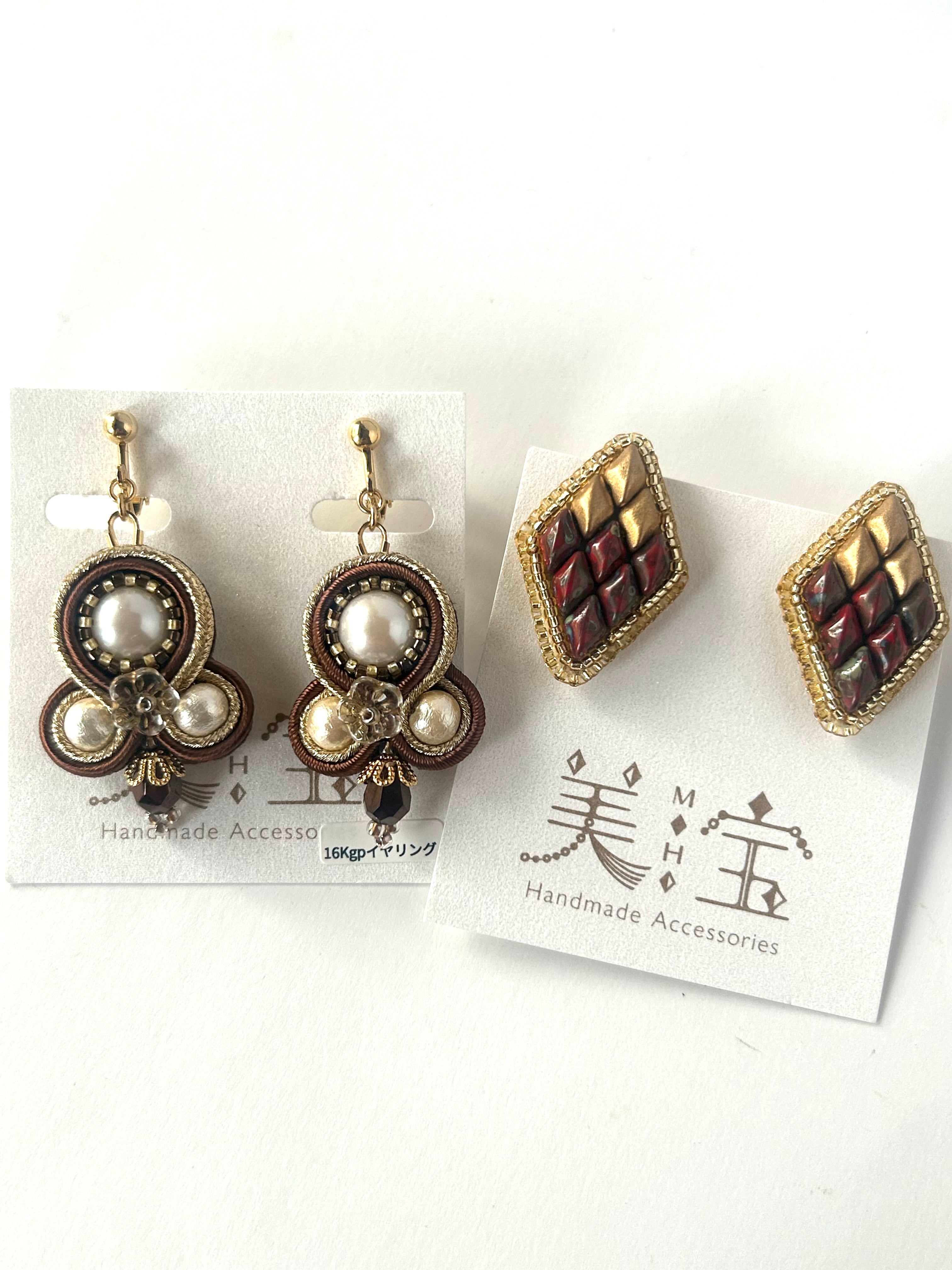 金具はソウタシエは16Kgp ひし形イヤリングは真鍮