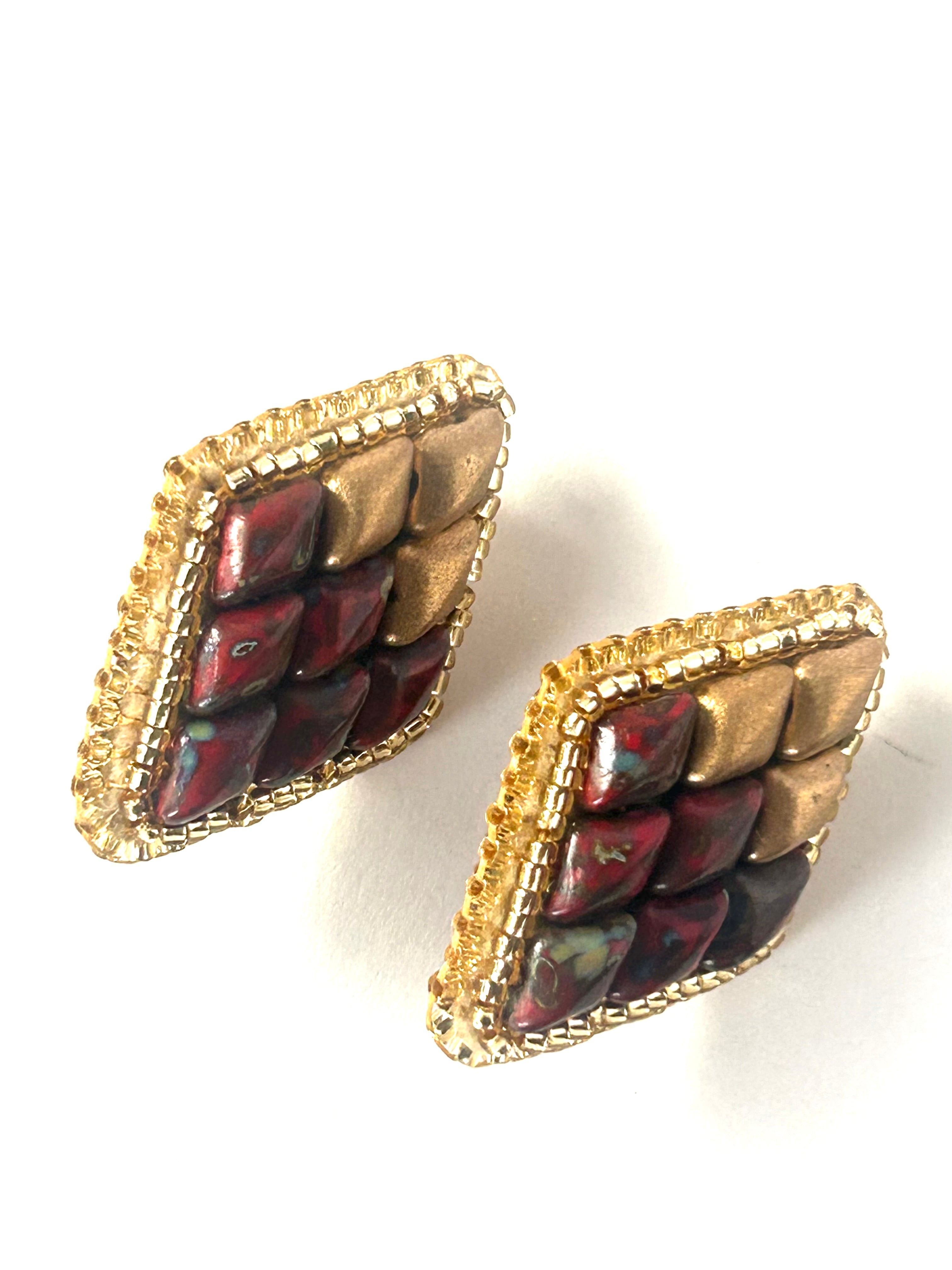 ひし形ビーズ刺繍のイヤリングのセット