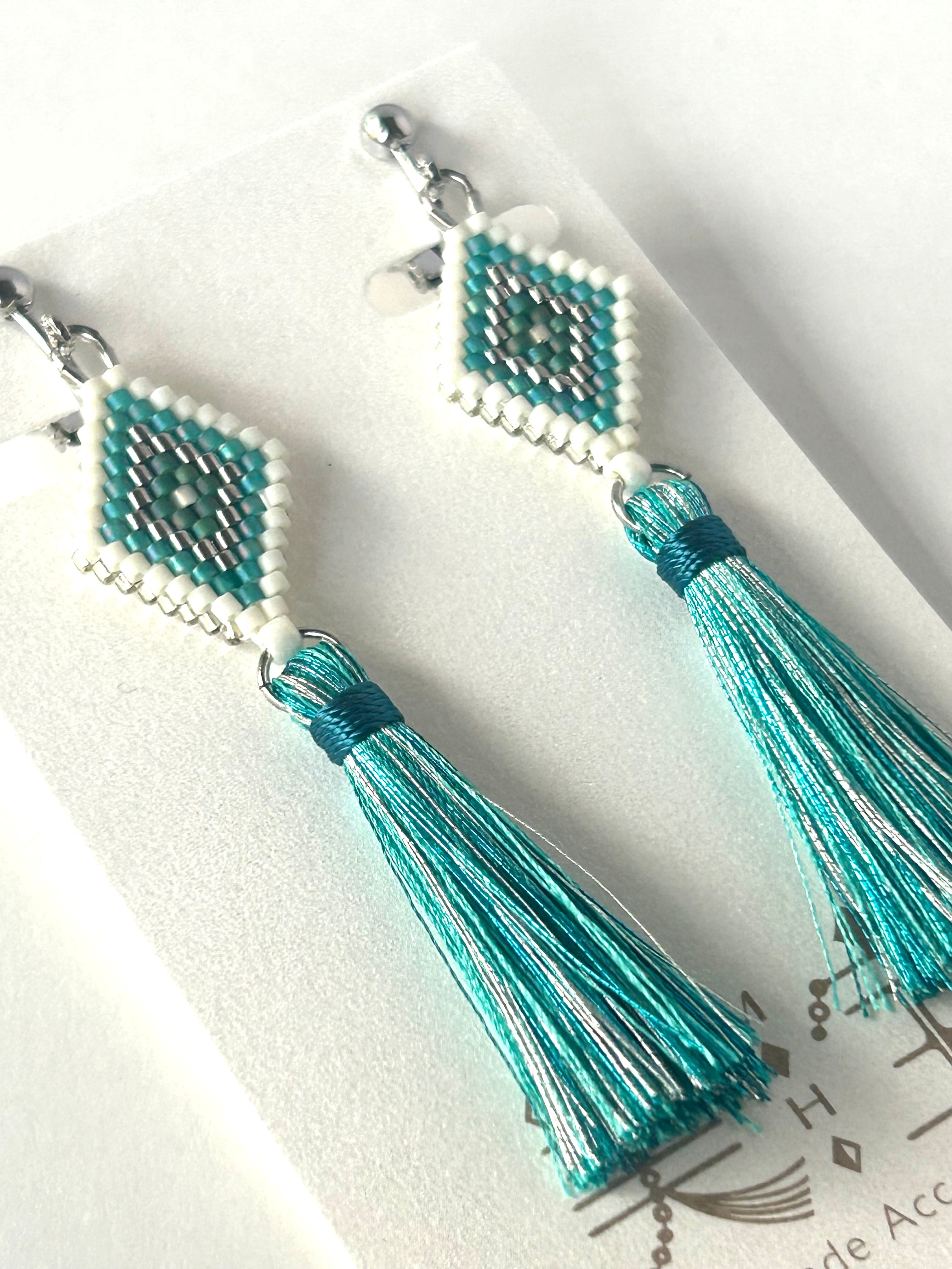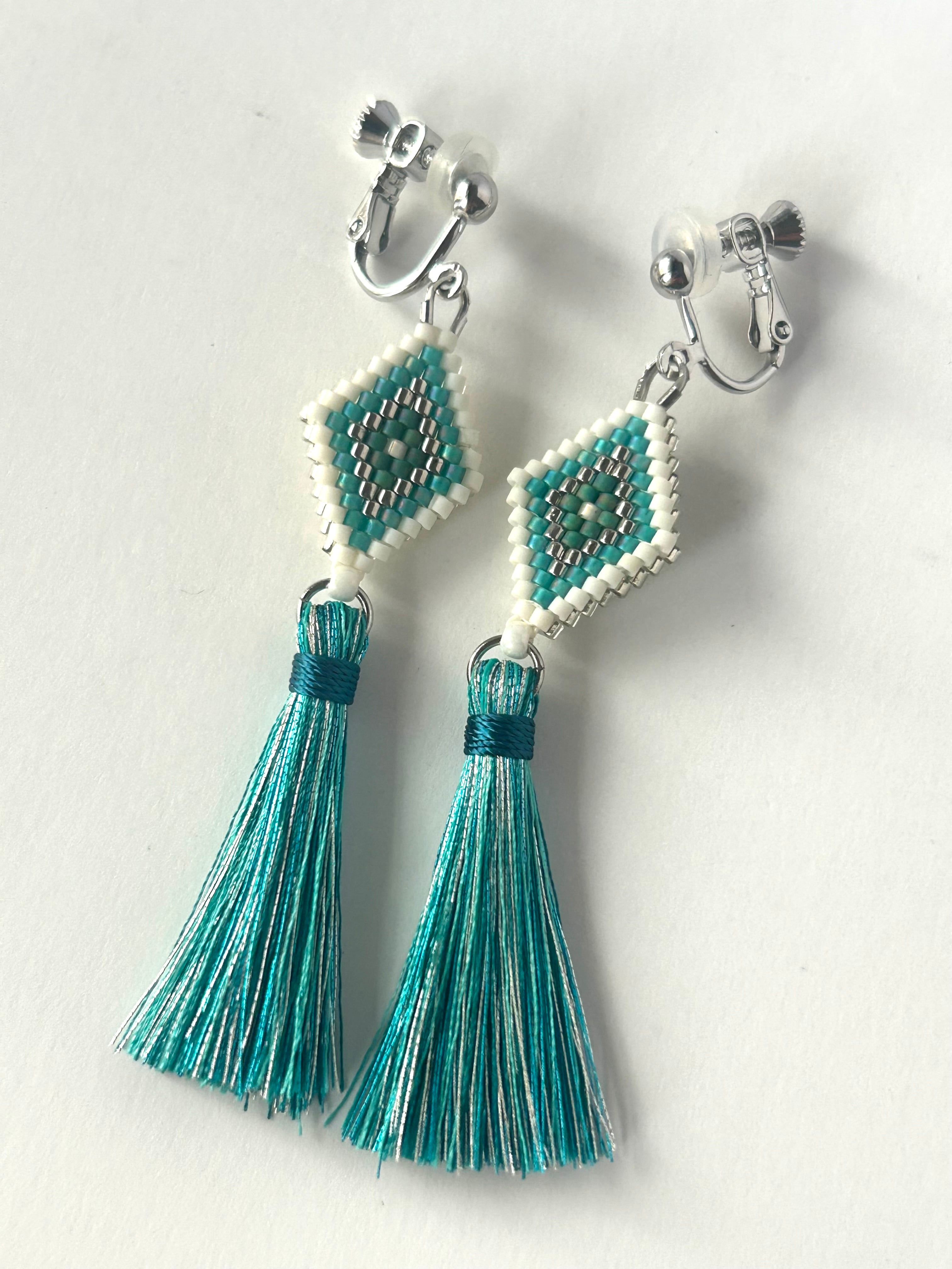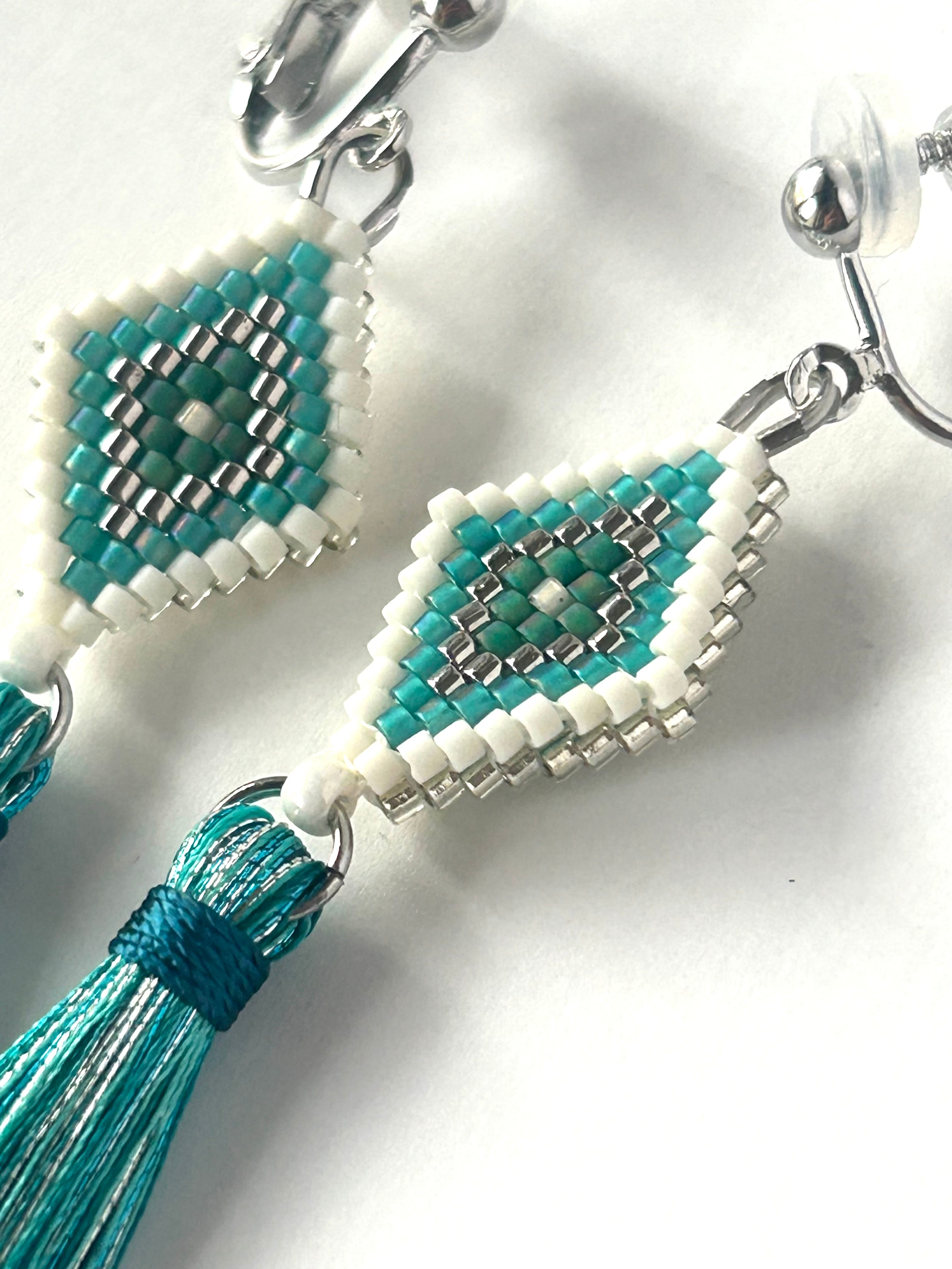 ひし形ビーズ刺繍のイヤリングのセット
