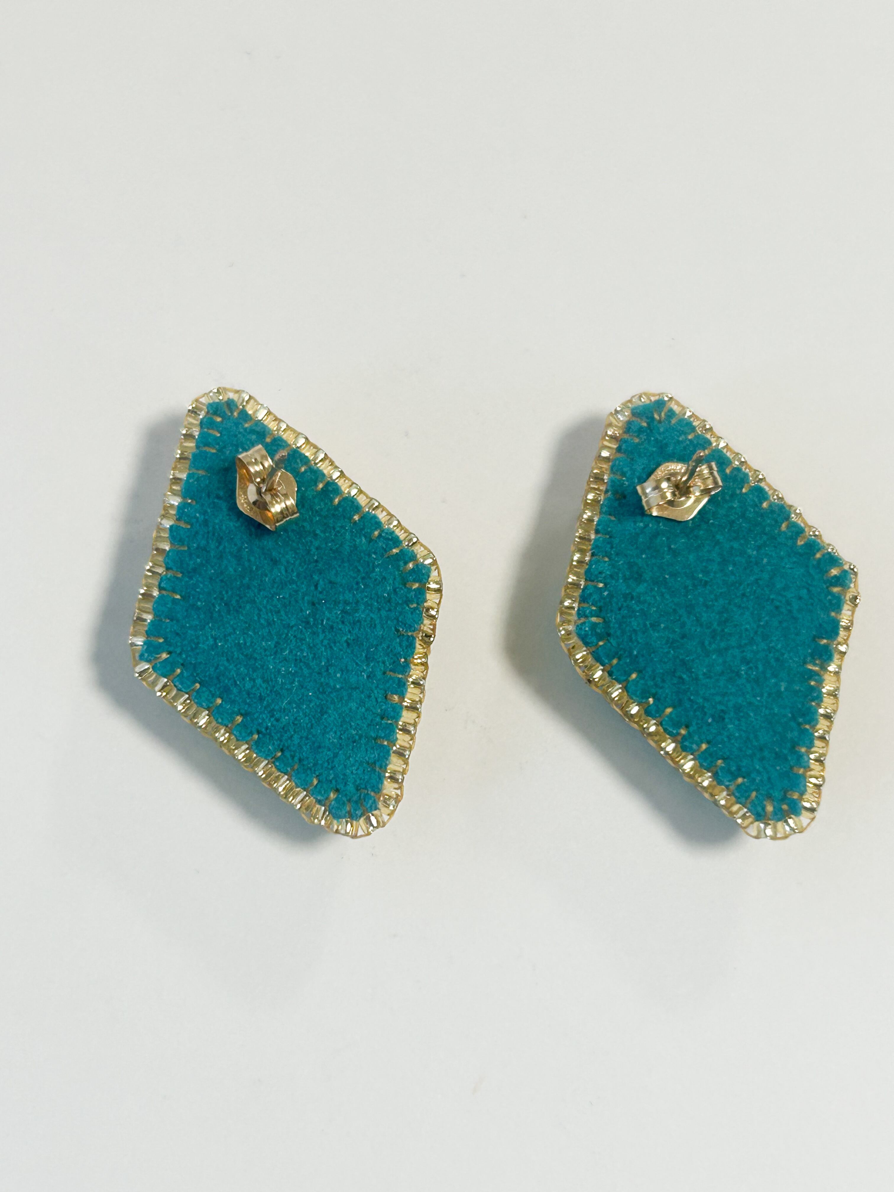 【再販】百貨店ポップアップで大人気 ビーズ刺繍のひし形ピアス ターコイズ 14kgf金具