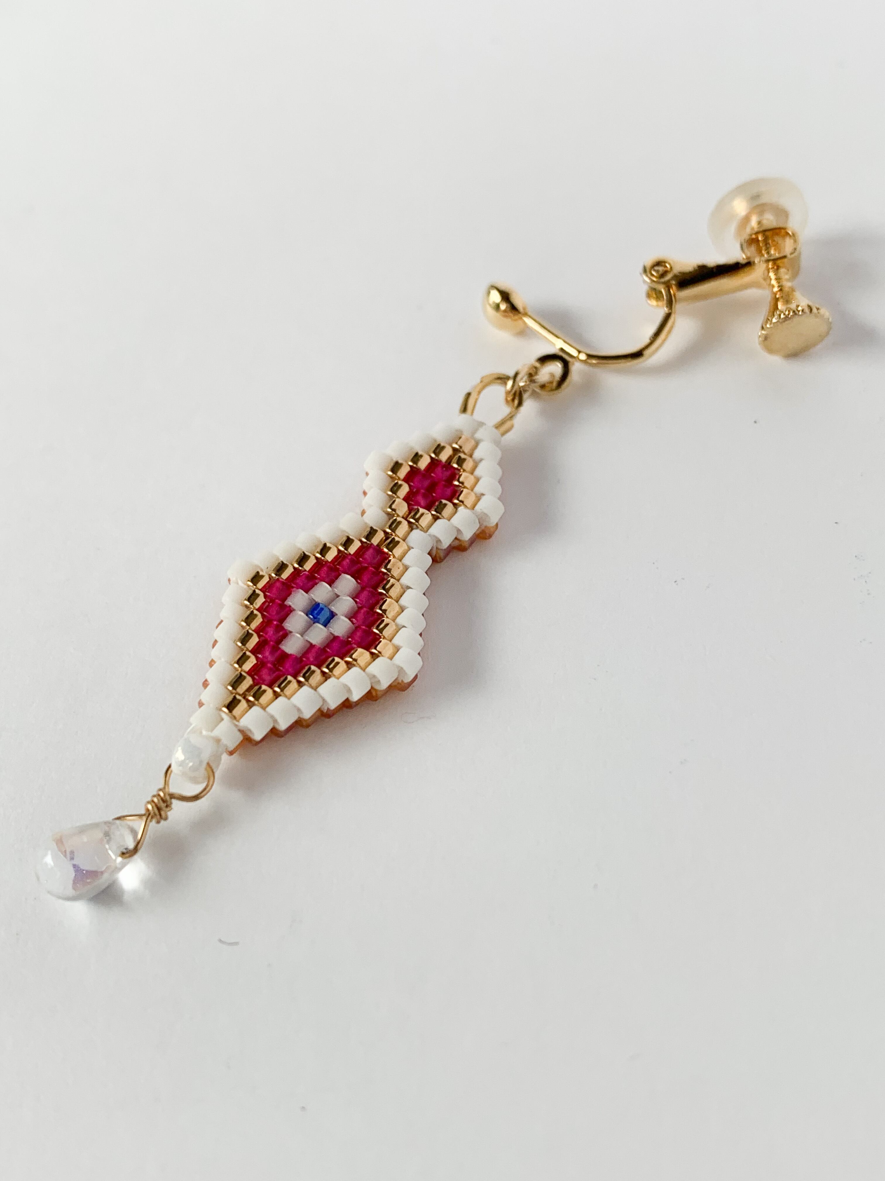 ビーズステッチのネイティブ柄イヤリング ピンク 16kgp金具